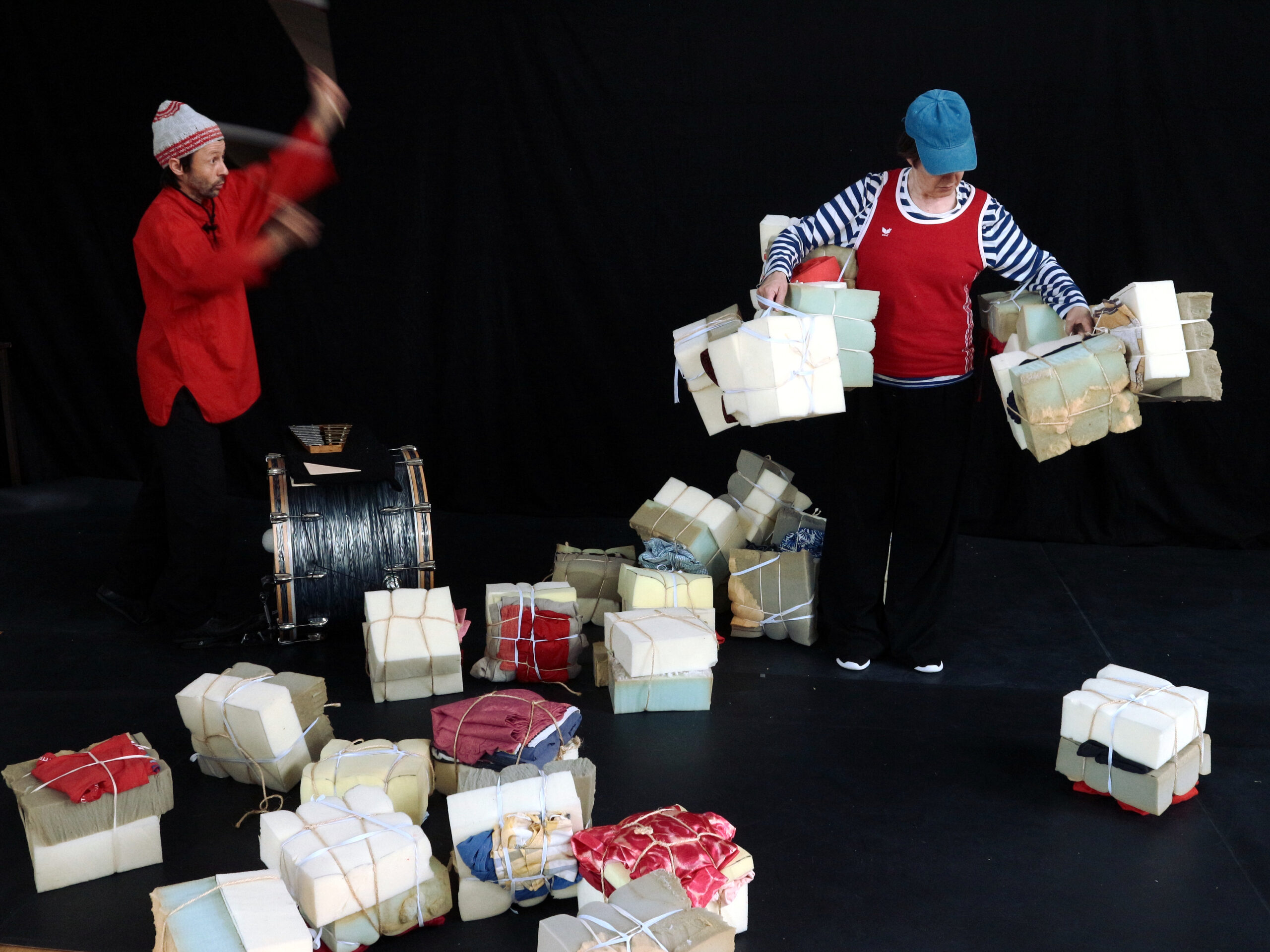 TOHU et BOHU, inséparables, s’apprêtent à raconter une histoire, celle des gens dispersés aux quatre coins du monde.