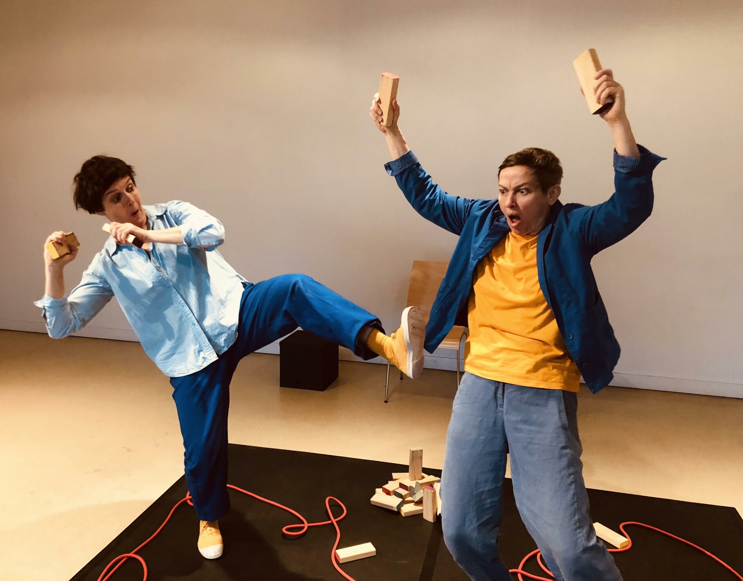 TOHU et BOHU, deux amies s’égarent dans les codes du théâtre pour décider qui commence, qui capte l’attention et qui récolte les applaudissements ?